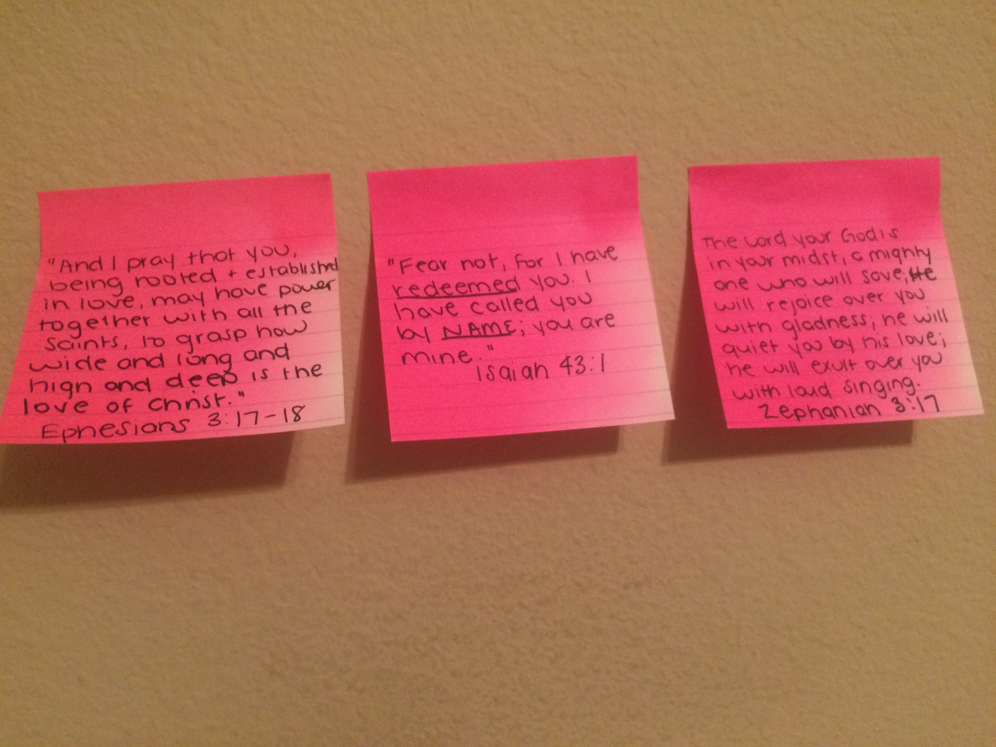 4. Write down three truths to replace the fears or lies in your mind and post them somewhere you will see them. I posted mine above my bed. As we expel the lies that leaves an open space in the mind. It’s critically important to fill that space with TRUTH that will override the fears. It’s kind of like your baby teeth falling out and your permanent teeth coming in. The lies are coming loose, so the truth can push through to its permanent place.