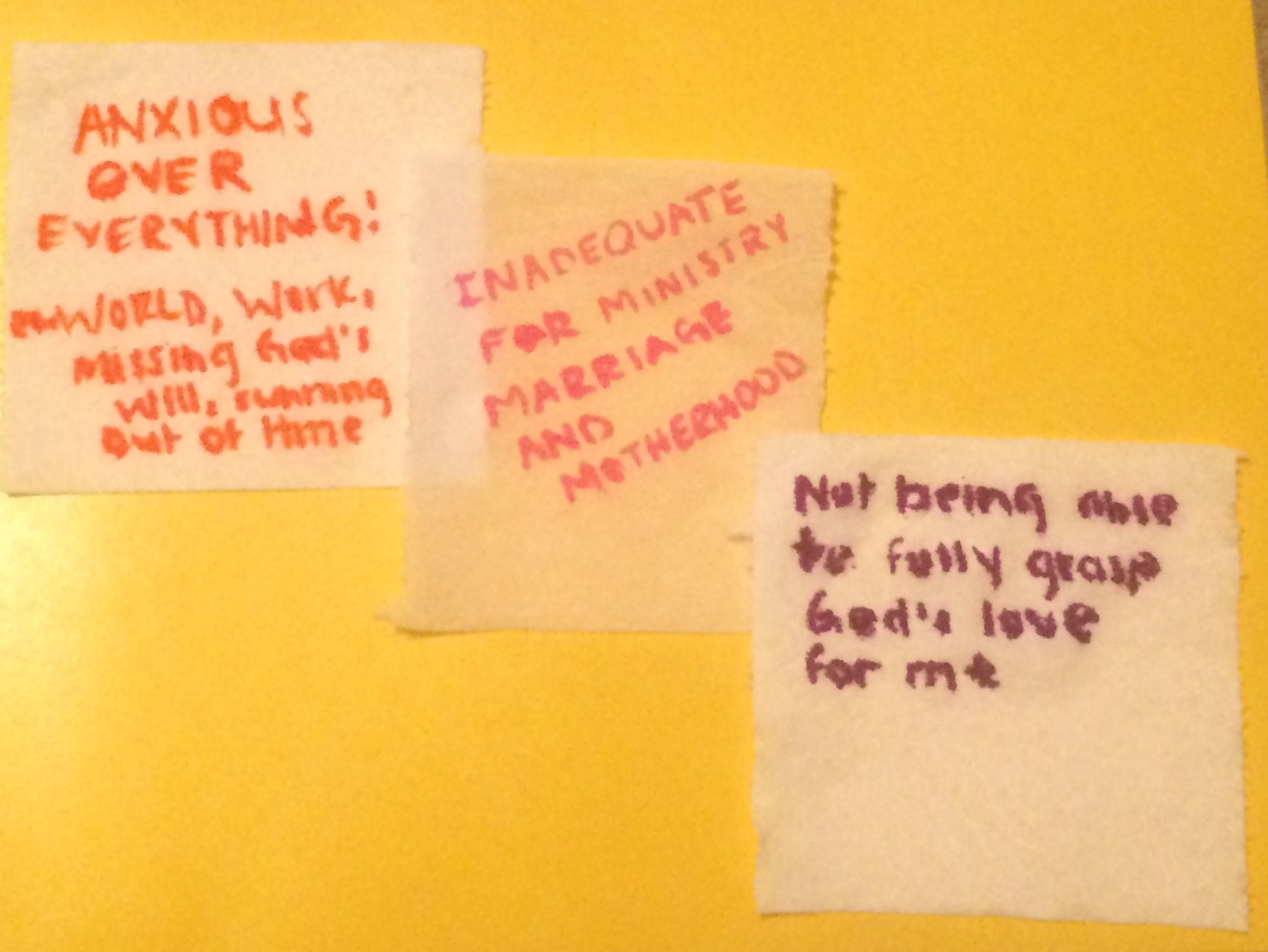 The DIY I have in mind, isn’t as mystical or magical, but it proved helpful for me and is just the right mix of silly and serious. Have you ever had worry wash up in your heart, felt frozen by fear, or constantly focused on “flaws?” Me too! In fact, a severe feeling of inadequacy for ministry, marriage and motherhood swept over be again recently. In the past few months, these feelings of inadequacy have bubbled up, but now it’s an equivalent of a 8 on the Richter scale of emotional earthquakes. In similar meltdowns, I’ve heard a popular saying that exclaims, “Get your act together,” but what I want to say is, “Get your faith together, sister. It’s go time.” The enemy is attempting to knock me out of alignment with the Lord and is grasping at straws after numerous failed efforts. I’ve come to realize where there is a void in my mind negativity will fill it. Example? You are married and your husband is five minutes late getting home from work. You immediately think the worse, that dinosaurs have come back from extinction to roam the earth and targeted your husband as their first snack. When in reality, he just got stuck in traffic. Our minds charge forward before we can reign those irrationals thoughts back in. It’s a circus up there. That’s why I applied this silly (yet serious) DIY to capture those thoughts, release them and replace them.